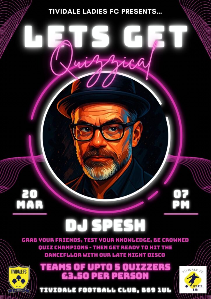 Tividale Ladies FC presents an evening of brains, banter and big tunes…