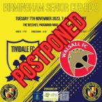 Tividale FC can confirm that tonight’s scheduled Birmingham County FA Senior Cup fixture Vs Walsall FC Official has been postponed due to a fixture clash!
